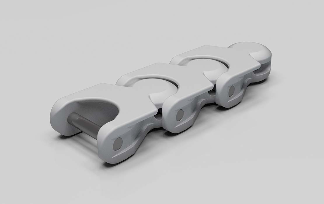 This is the most versatile chain in the series being able to flex in several directions. PM1700 can be employed on very small bends with turn discs, which makes construction of very compact conveyors possible.