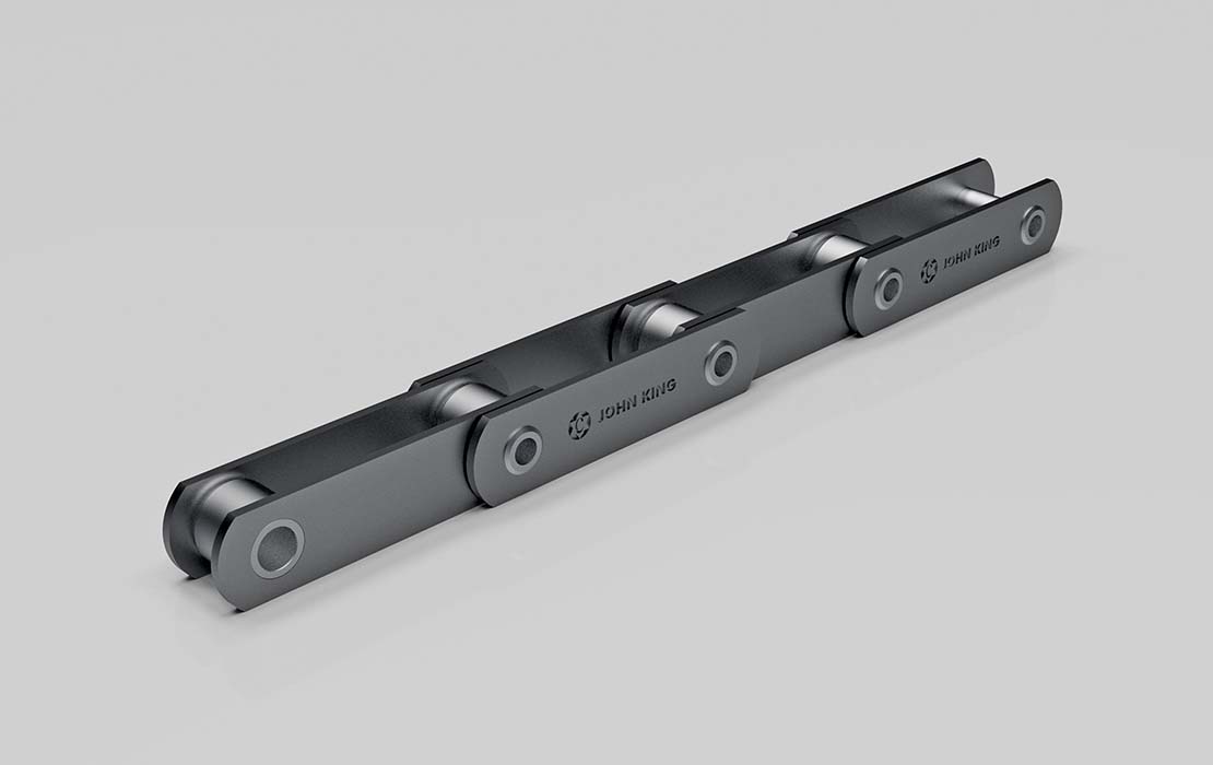 JOHN KING FV hollow pin chains do not have any specific alphabetical prefix so are described as FV hollow pin type. The hollow pin bore serves the exact same purpose as the BS and M series hollow pin chains and allows a simple and effective means of attachment through the internal diameter of the chain bearing pin.